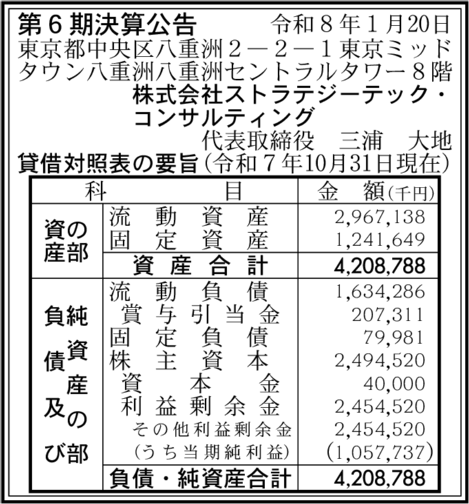 | 会社名 | 株式会社ストラテジーテック・コンサルティング |