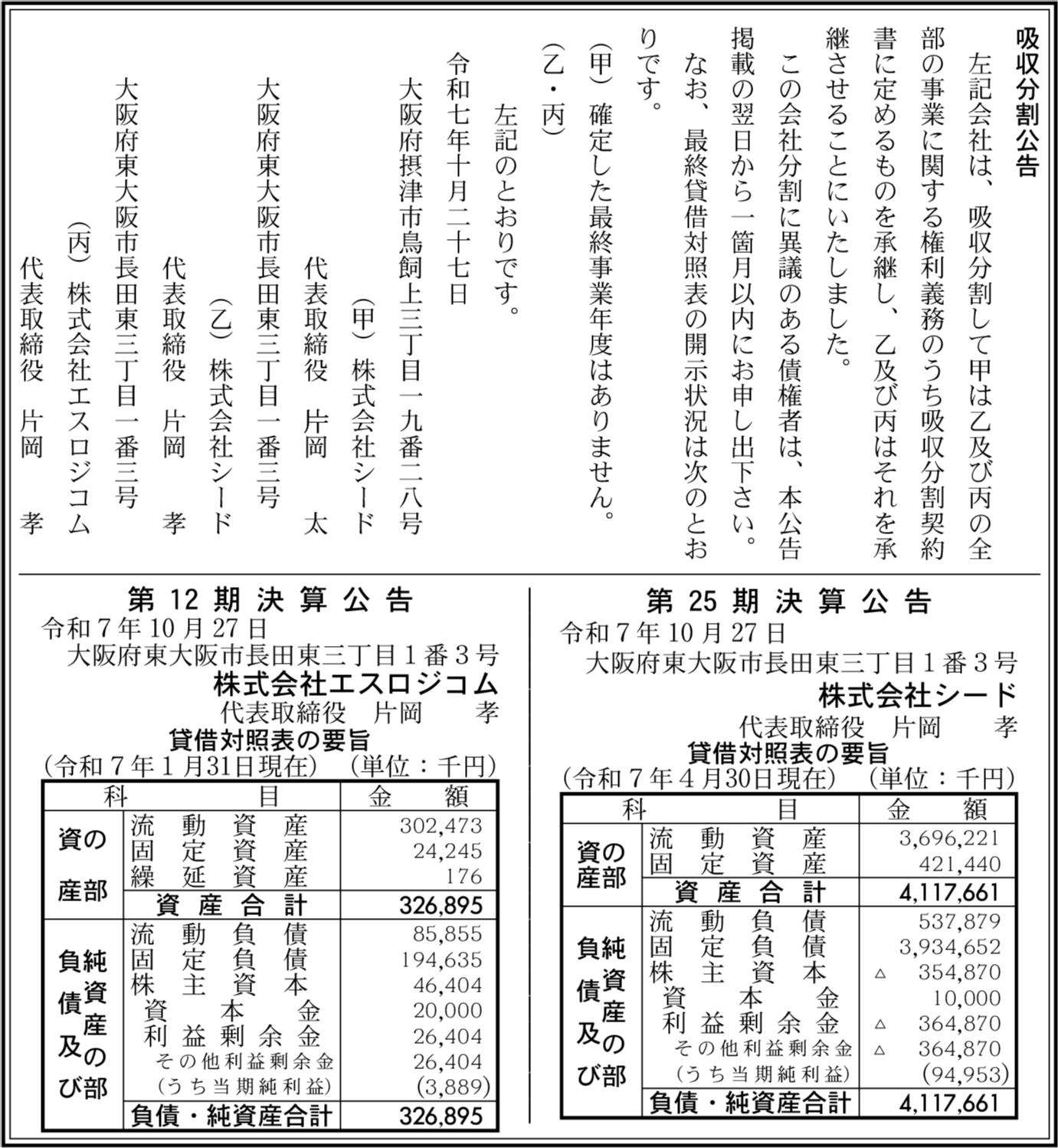 株式会社エスロジコム 大阪府東大阪市 【2025年1月期】 |