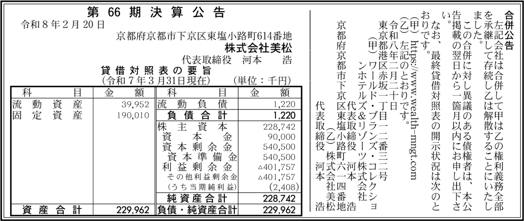 | 純資産 | 2億2,874万2,000円 |
