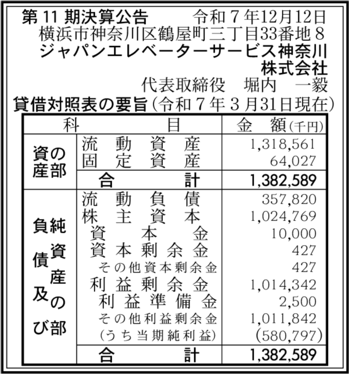 | 会社名 | ジャパンエレベーターサービス神奈川株式会社 |