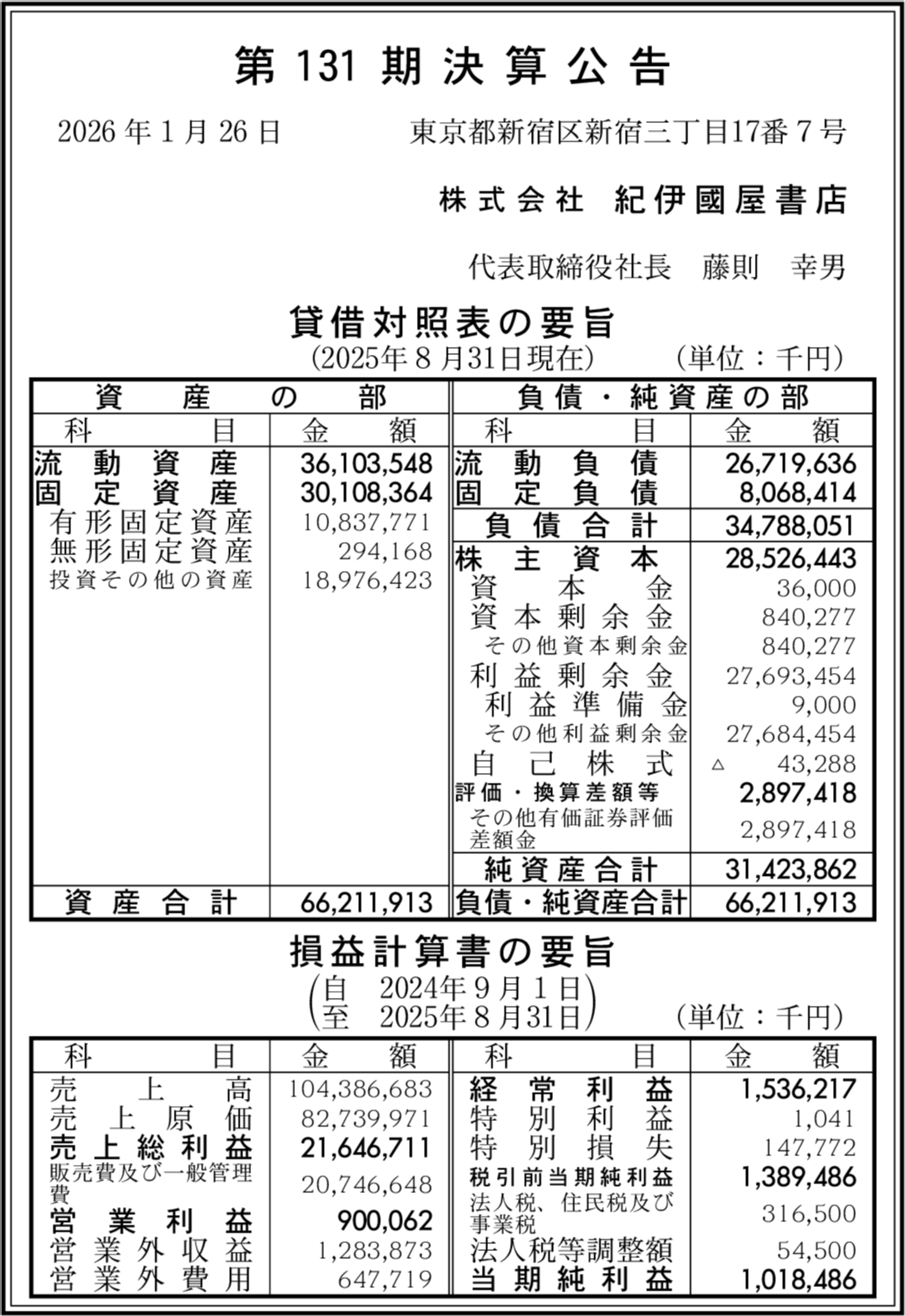 株式会社ブックセラーズ&カンパニー 東京都新宿区 【2025年5月期】 |
