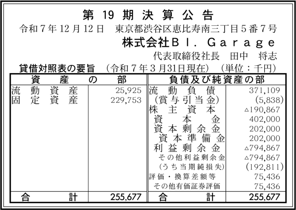 株式会社Crypto Garage 東京都渋谷区 【2025年3月期】 |
