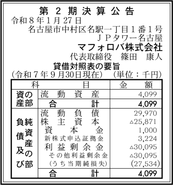 | 会社名 | マフォロバ株式会社 |
