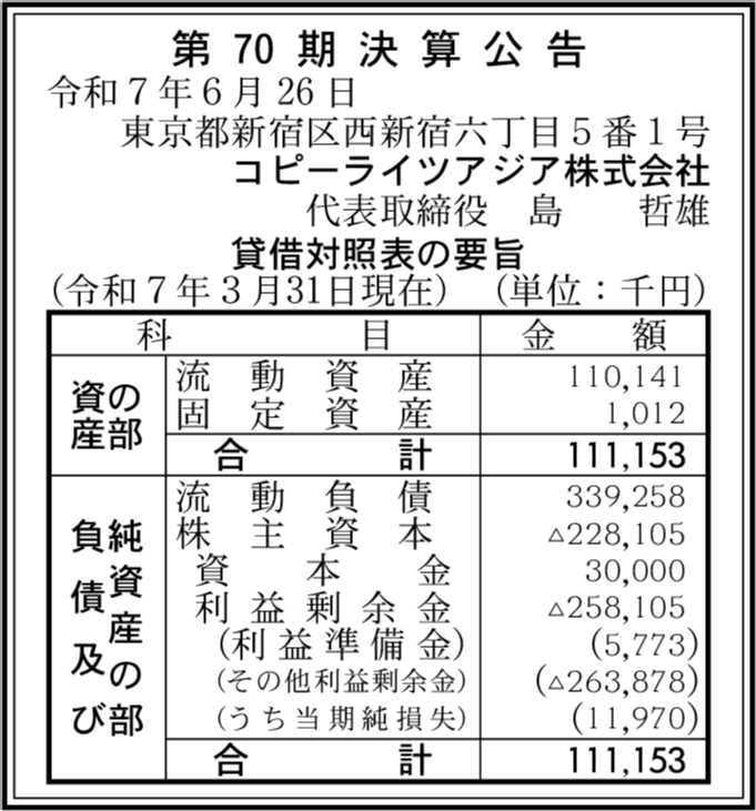 コピーライツ東京株式会社 東京都新宿区 【2025年3月期】 |