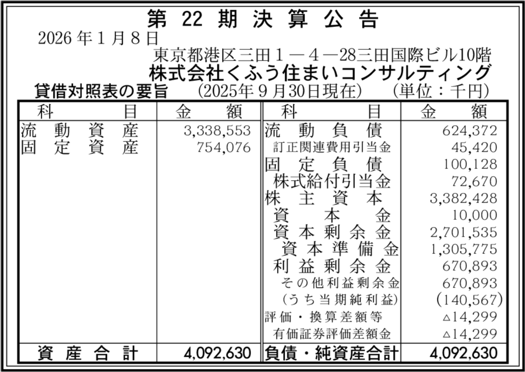 | 総資産 | 40億9,263万円 (+2.37%) |