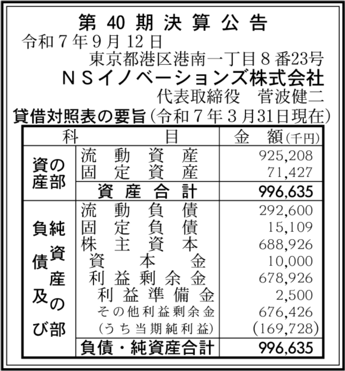 NSリヤンド株式会社 東京都港区 【2024年3月期】 |