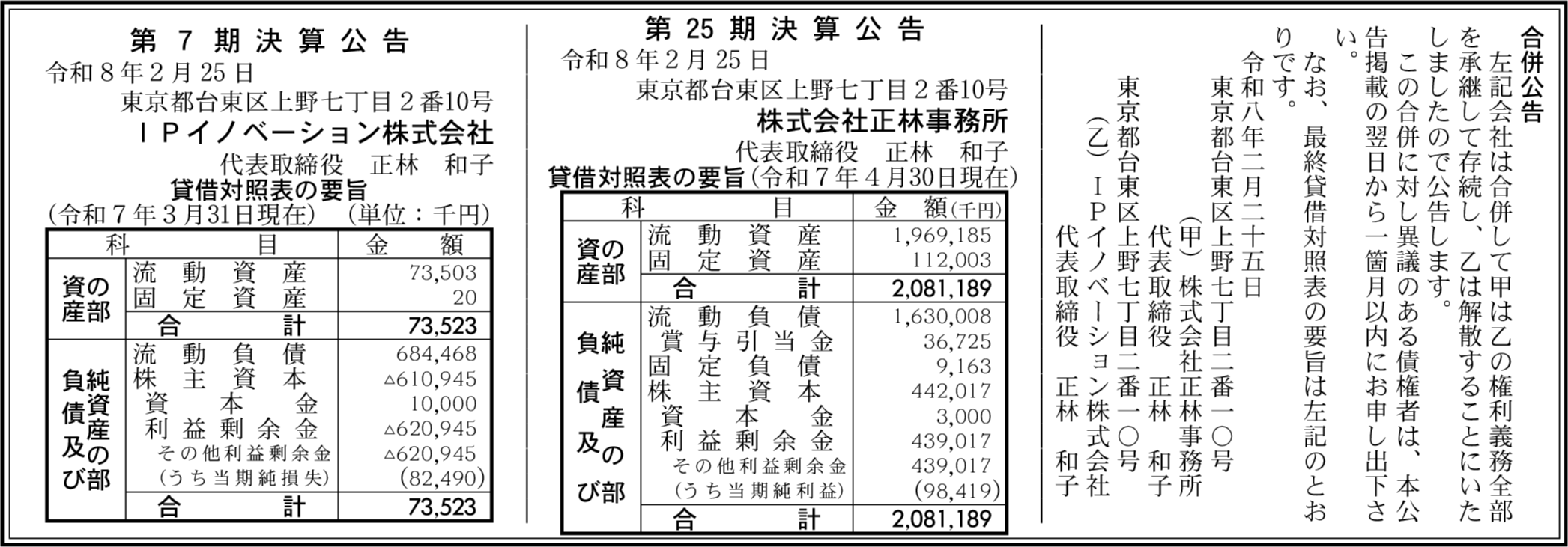 IPイノベーション株式会社 東京都台東区 【2025年3月期】 |