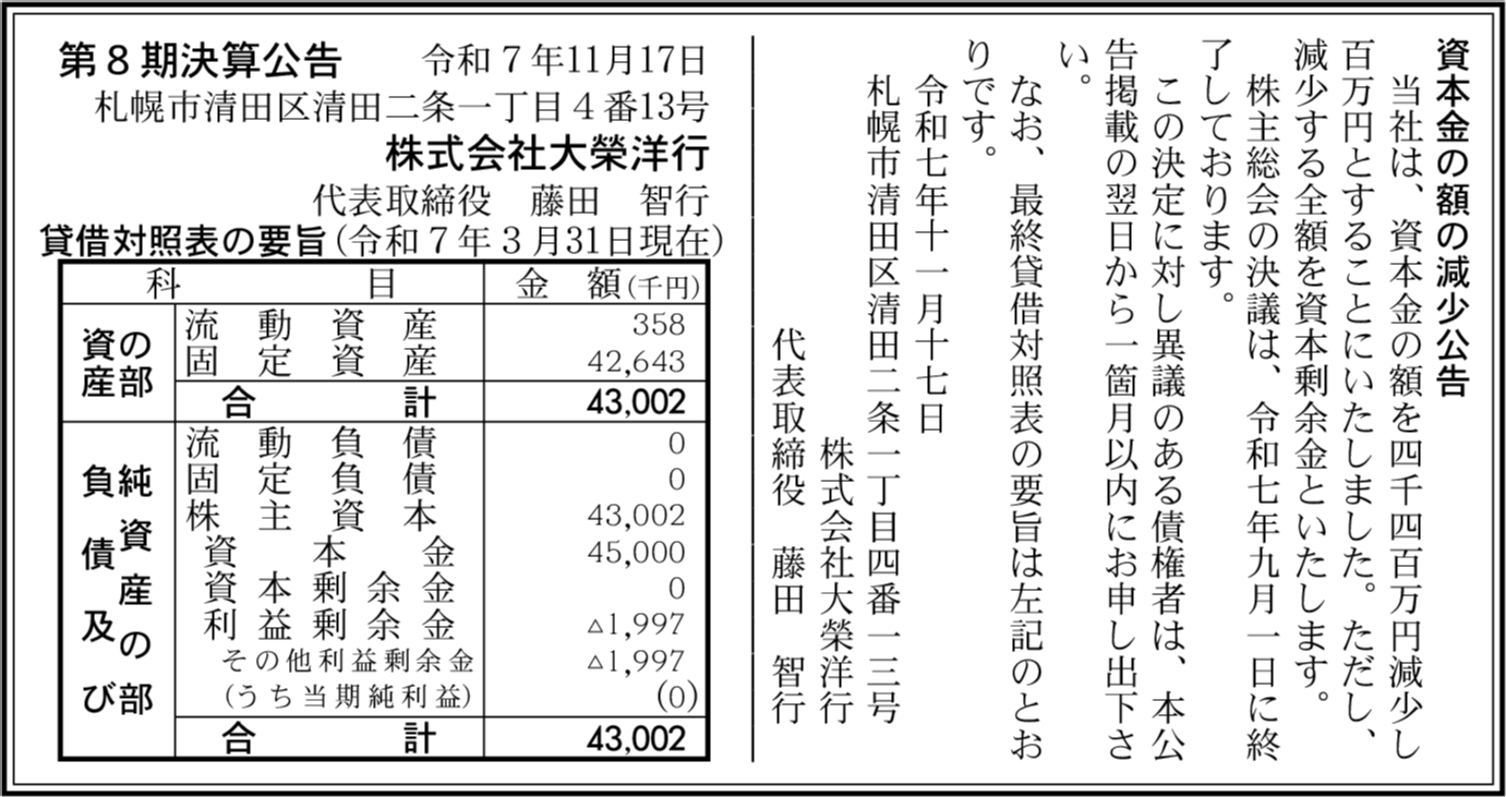 大榮開発株式会社 札幌市清田区 【2024年3月期】 |