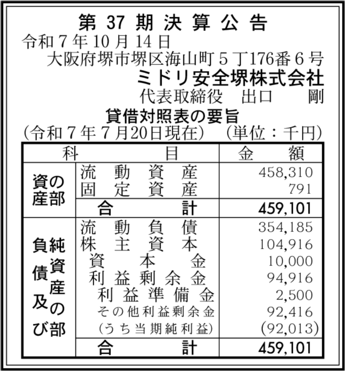 ミドリ安全東大阪株式会社 大阪府東大阪市 【2025年6月期】  |