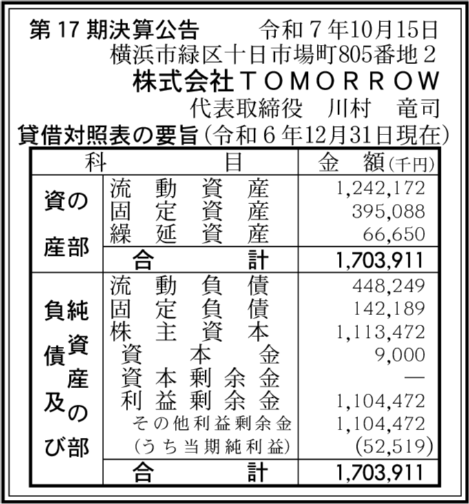 会社名 | 株式会社TOMORROW |