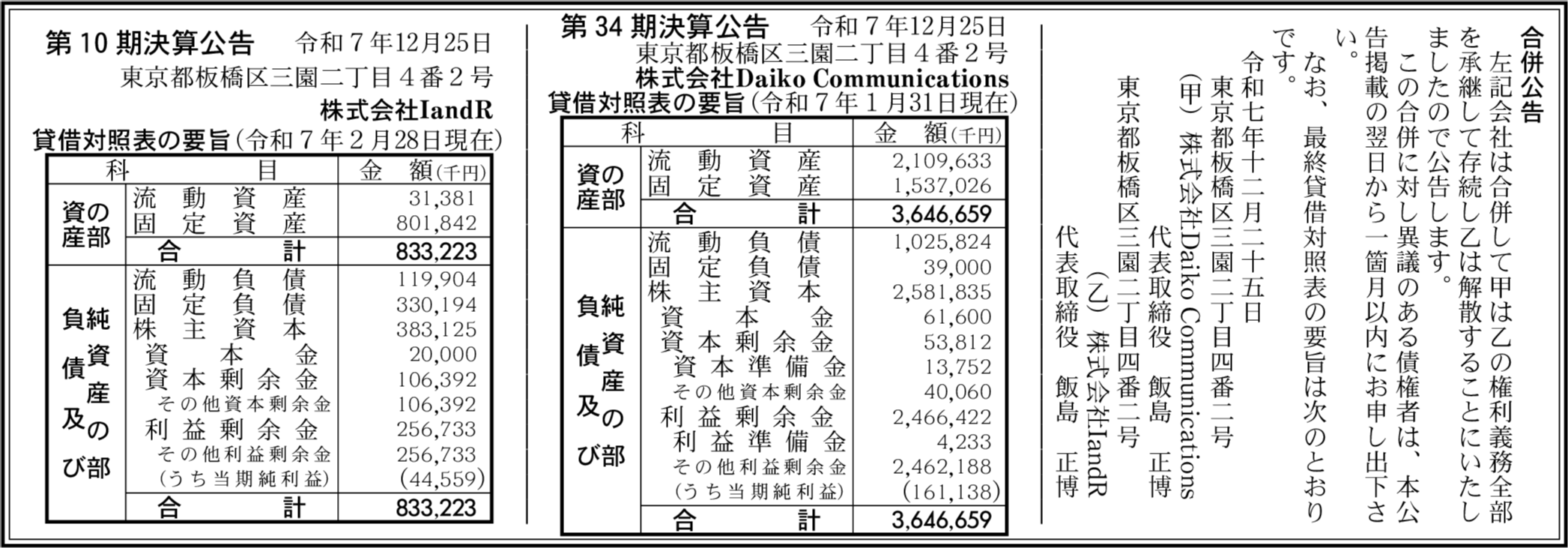 株式会社IandR 東京都板橋区 【2025年2月期】 |