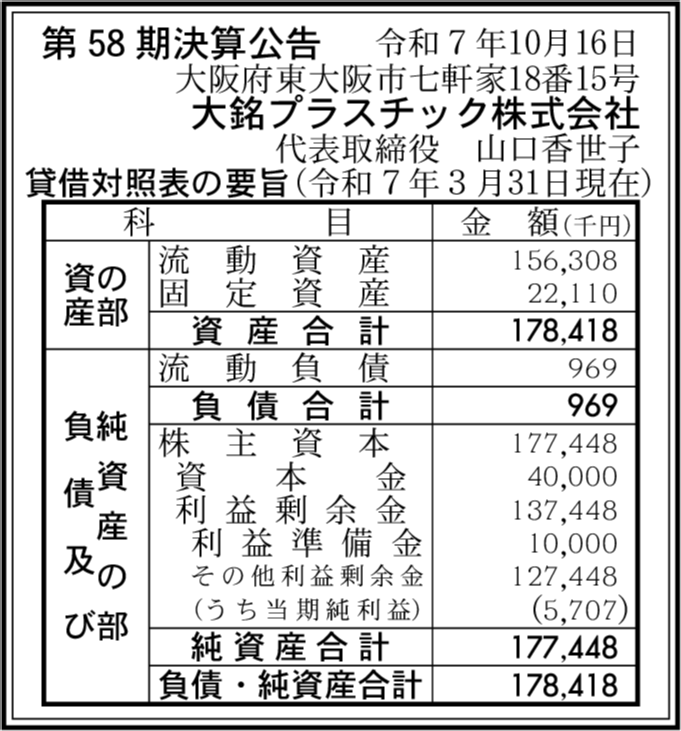 大阪銘板株式会社 大阪府東大阪市 【2025年3月期】 |