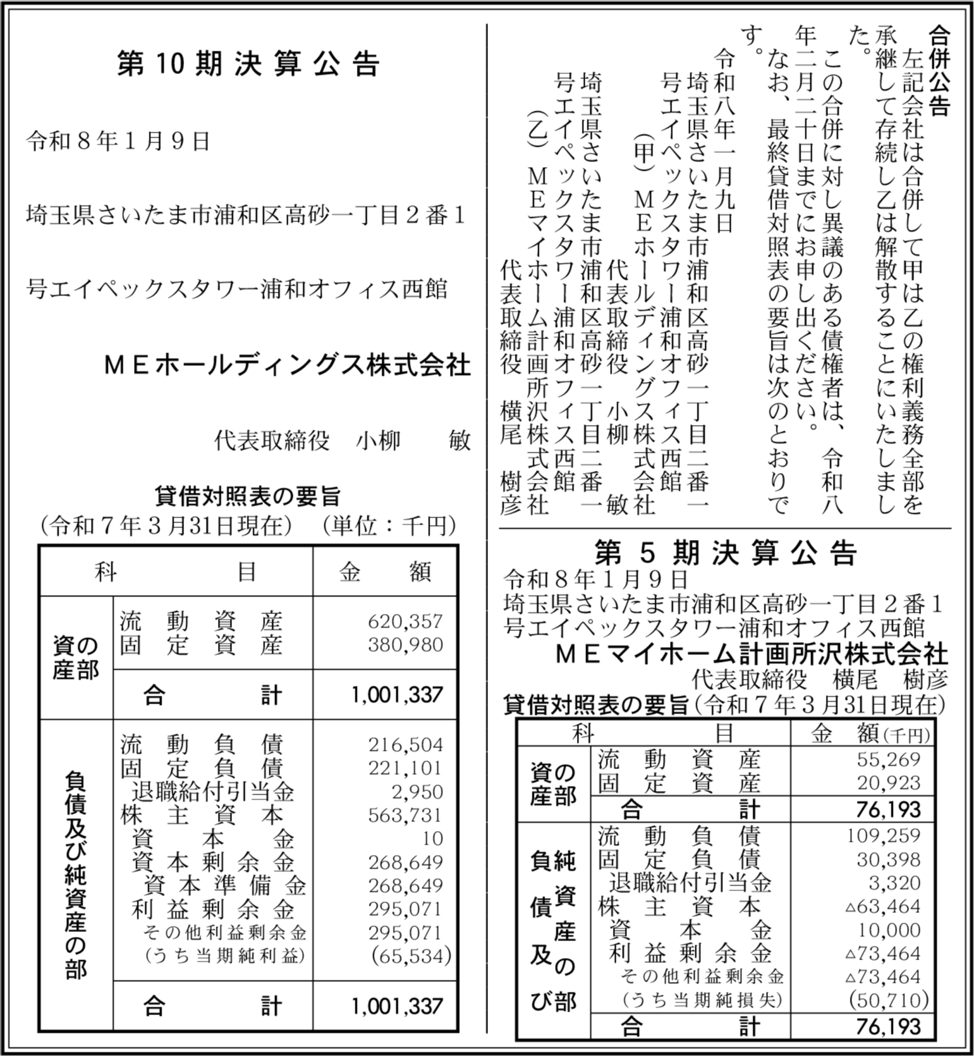MEマイホーム計画所沢株式会社 埼玉県さいたま市浦和区 【2025年3月期】 |