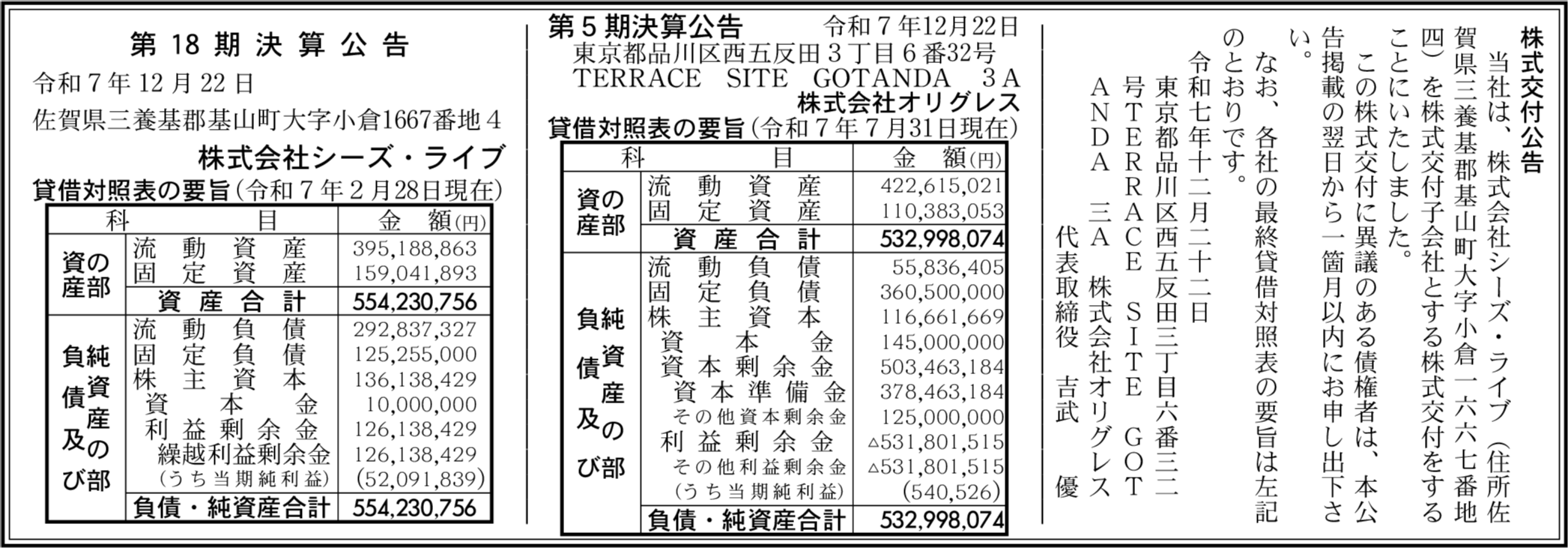株式会社シーズ・ライブ 佐賀県三養基郡基山町 【2025年2月期】 |