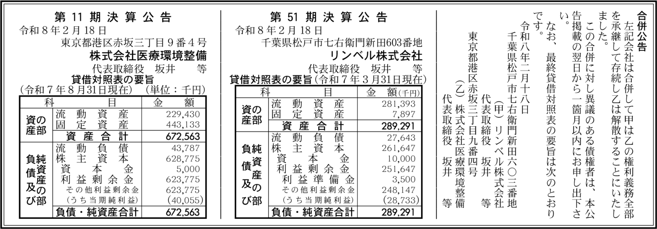 リンベル株式会社 千葉県松戸市 【2025年3月期】 |
