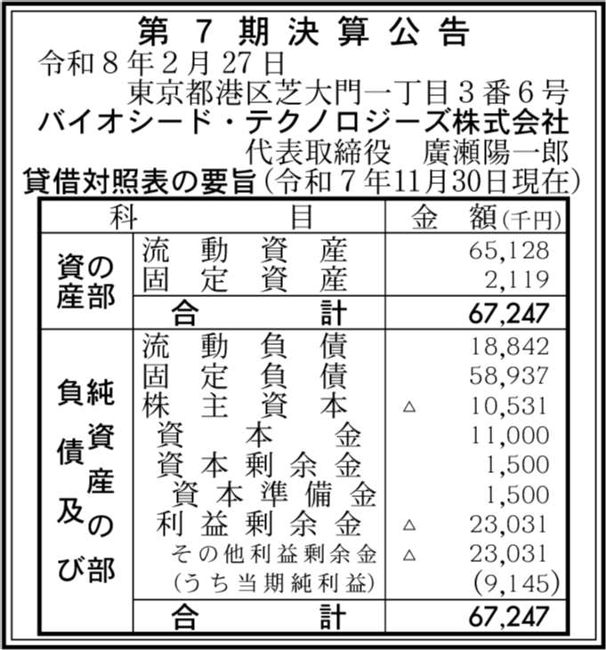 | 会社名 | バイオシード・テクノロジーズ株式会社 |