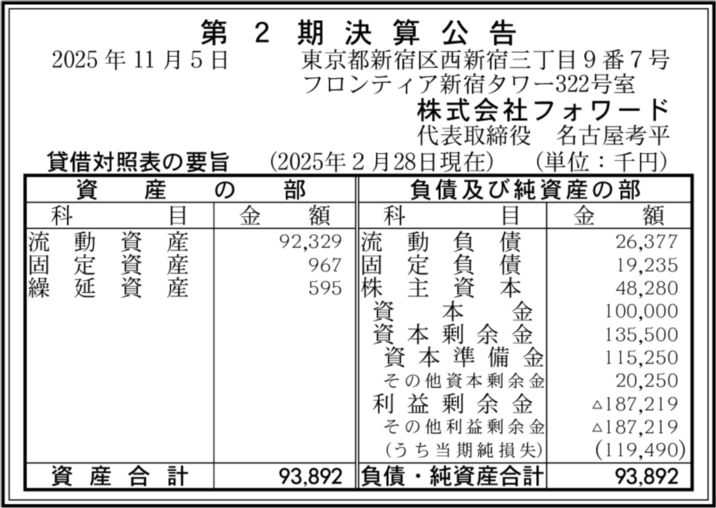 | 利益剰余金 | △1億8,721万9,000円 (赤字拡大) |