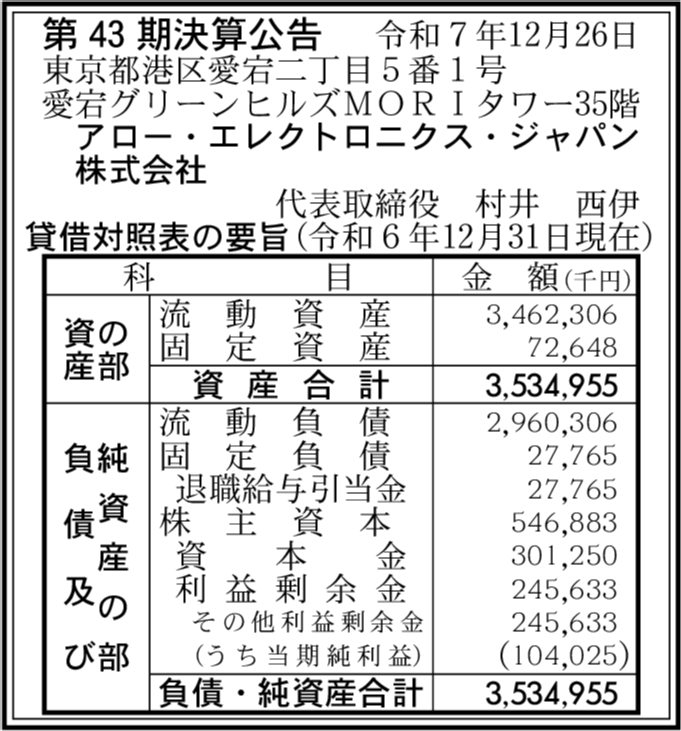 | 会社名 | アロー・エレクトロニクス・ジャパン株式会社 |