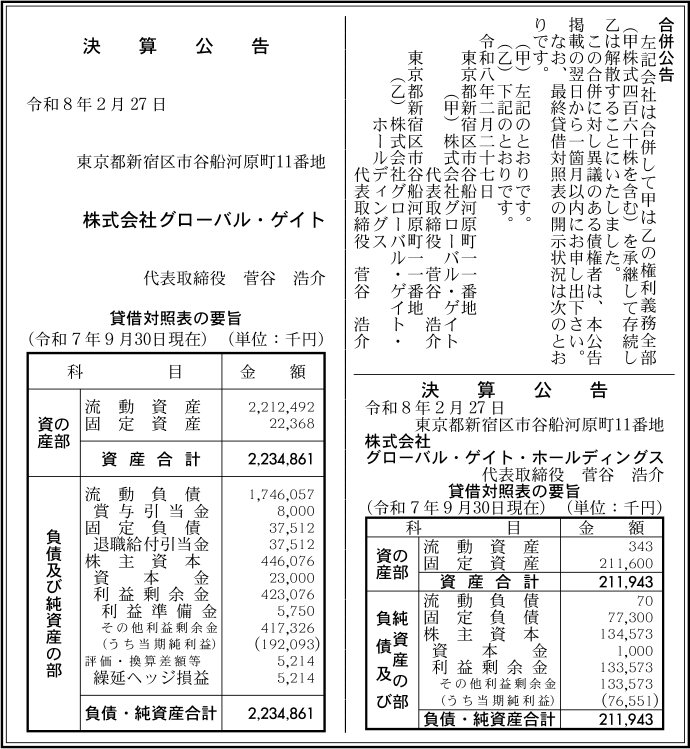 株式会社グローバル・ゲイト 東京都新宿区 【2025年9月期】 |