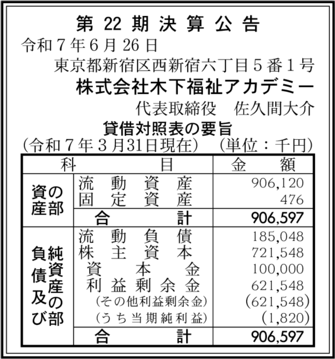 株式会社木下の介護 東京都新宿区 【2025年3月期】 |