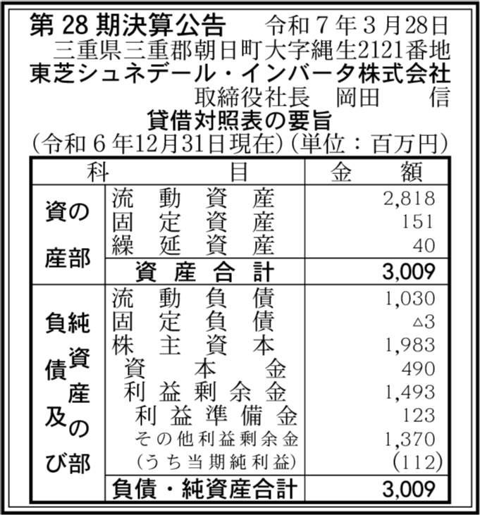東芝三重メンテサービス株式会社閉鎖済み 三重県三重郡朝日町 【2020年3月期】 |
