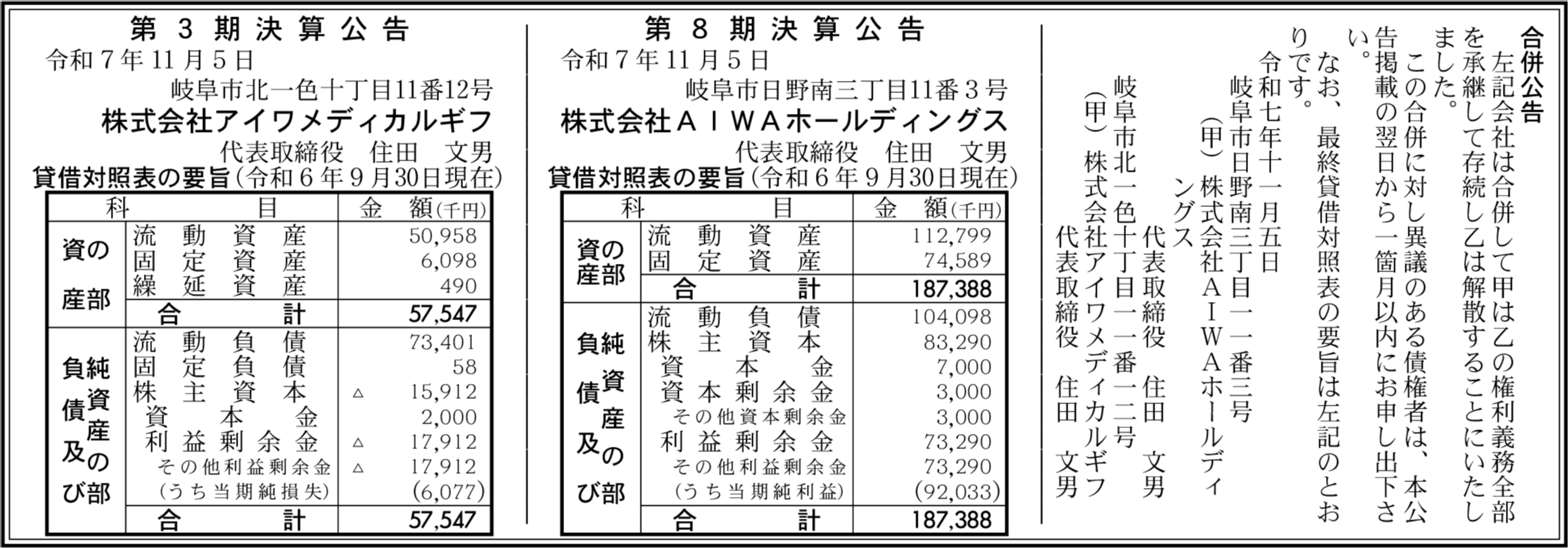 株式会社アイワメディカルギフ 岐阜市 【2024年9月期】 |