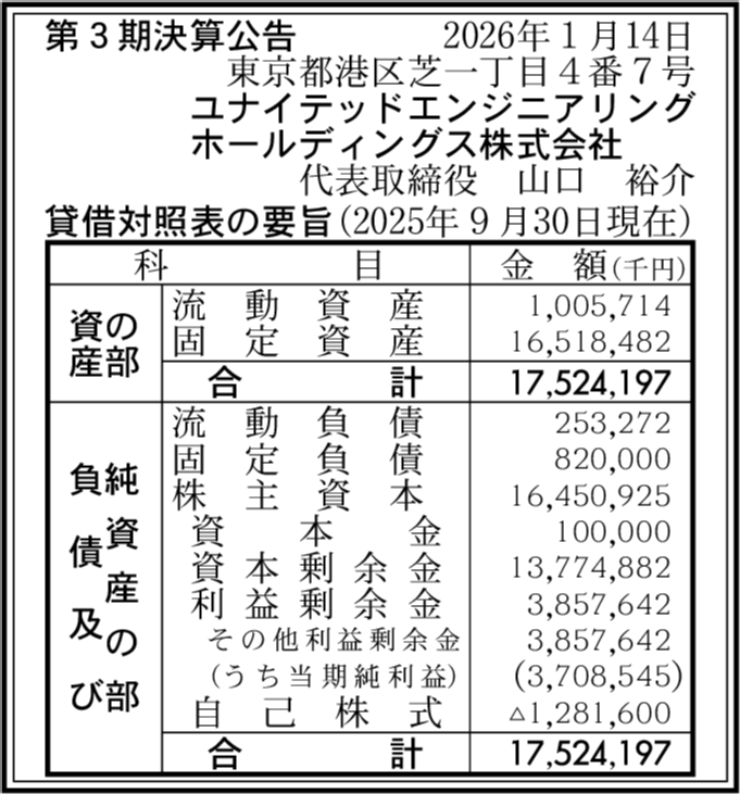 ユナイテッドエンジニアリング株式会社 東京都港区 【2025年9月期】 |