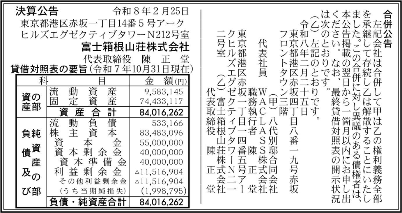 | 会社名 | 富士箱根山荘株式会社 |