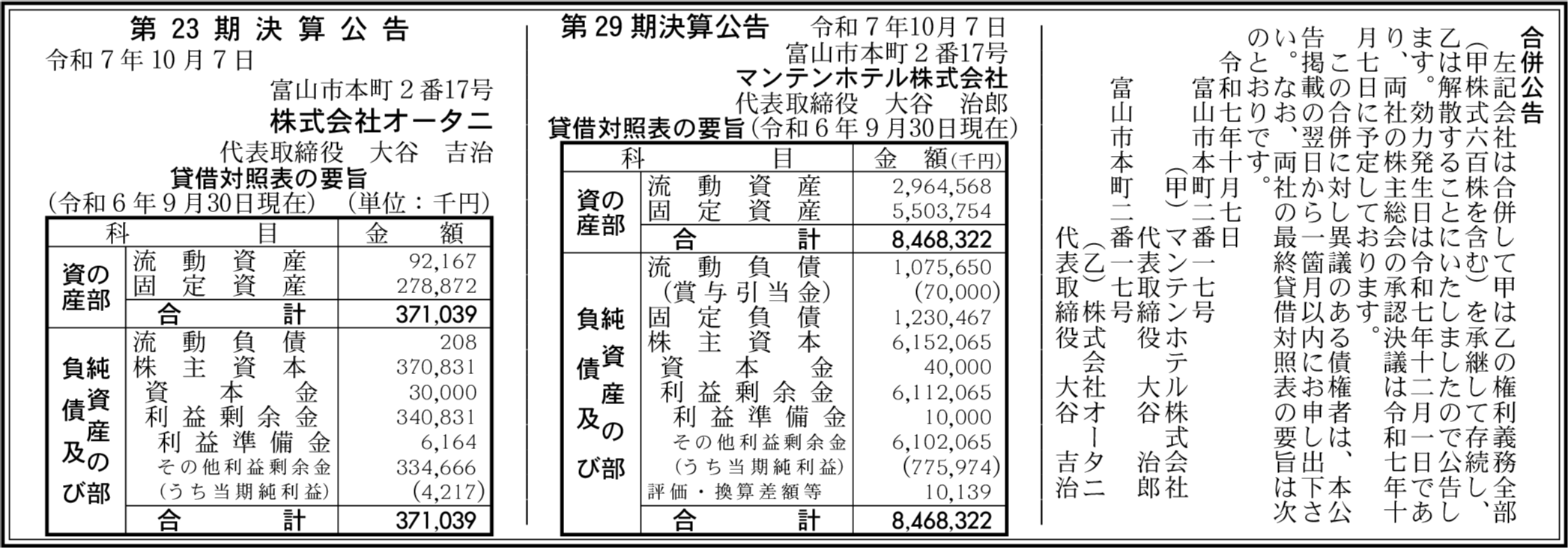 オンリーワンライフホールディングス株式会社 富山県富山市 【2025年6月期】 |