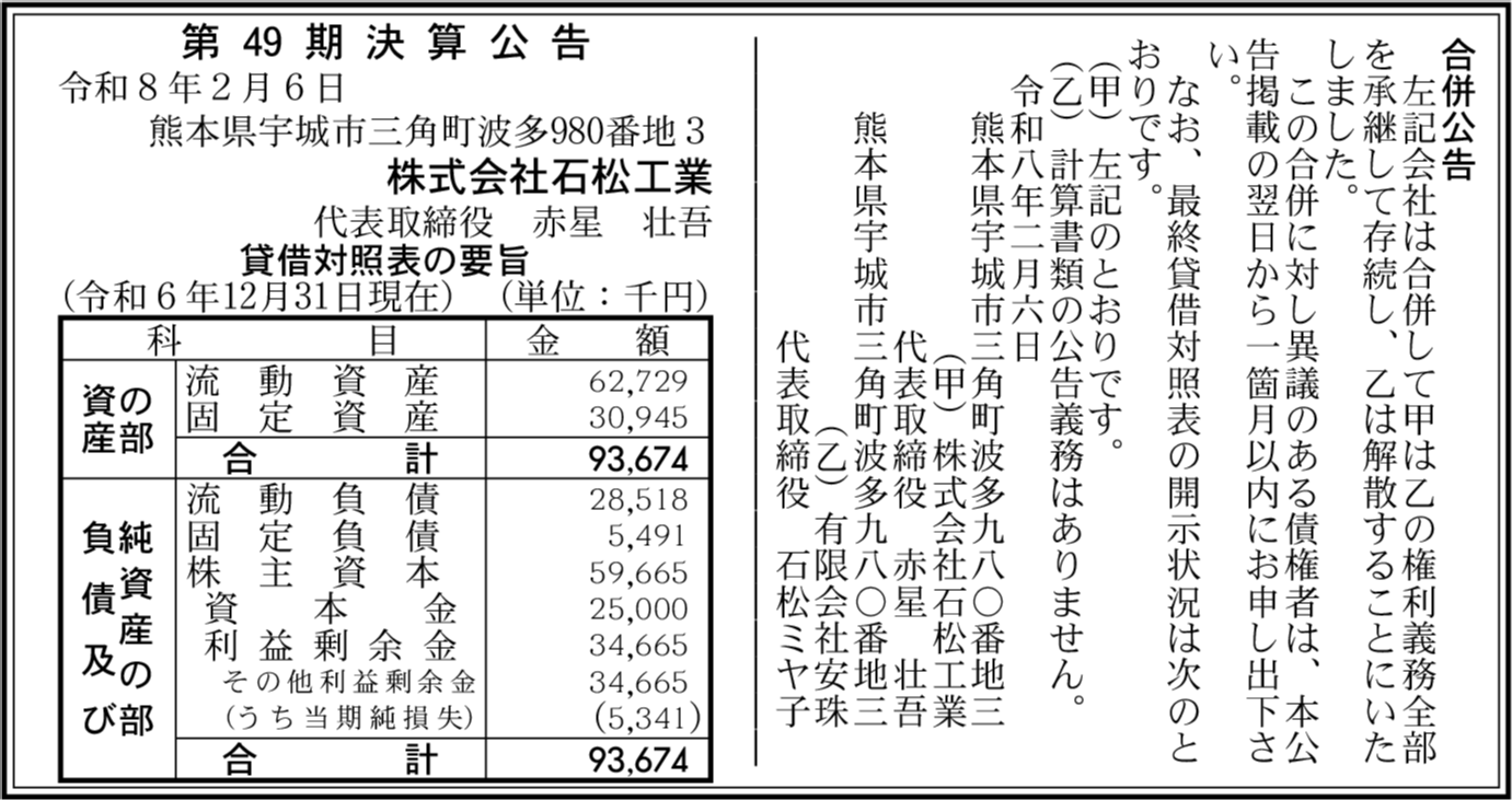 | 会社名 | 株式会社石松工業 |