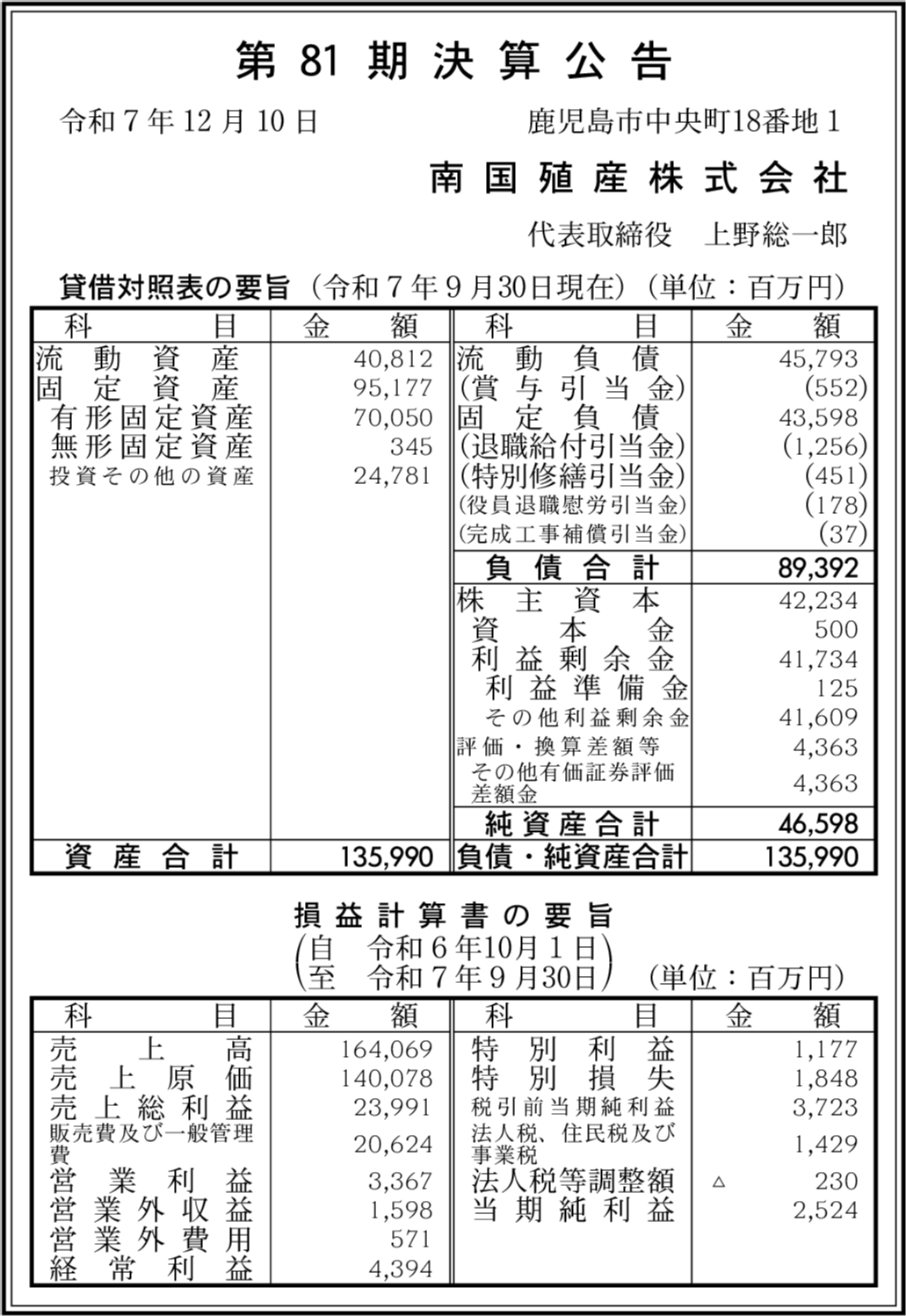 南国システムサービス株式会社 鹿児島市 【2025年9月期】 |