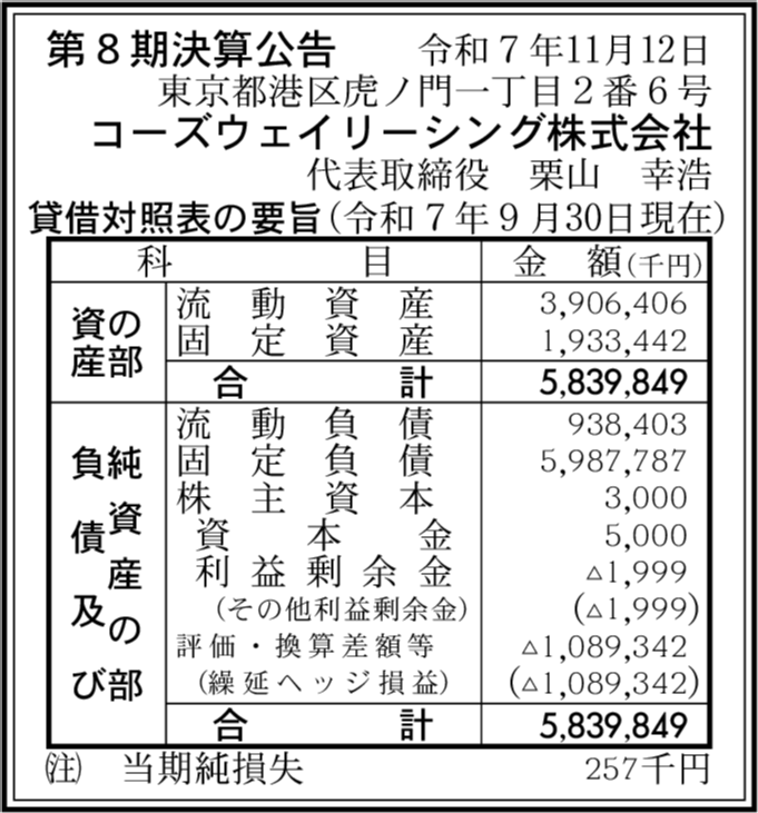 | 会社名 | コーズウェイリーシング株式会社 |
