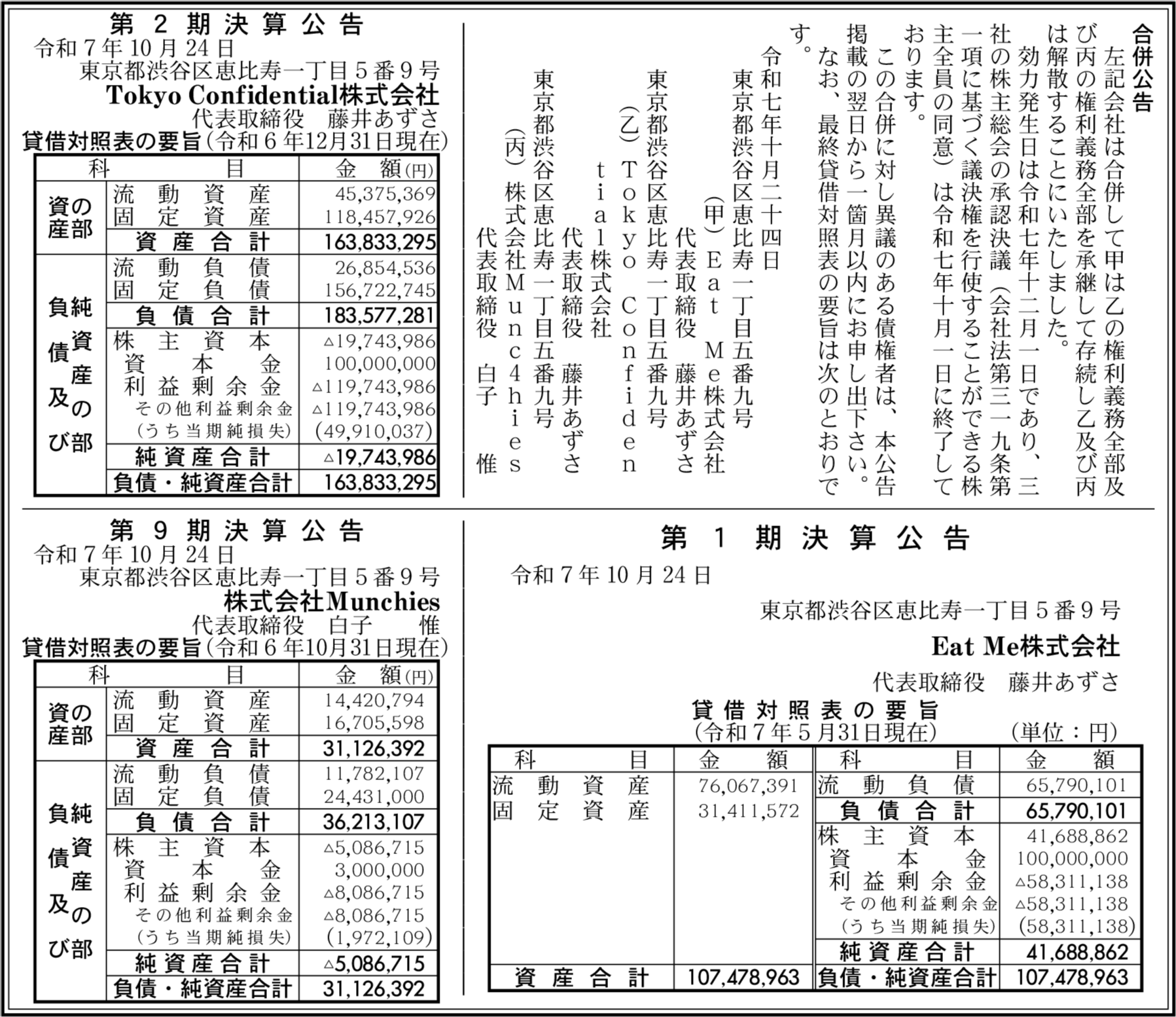 Eat Me株式会社 東京都渋谷区 【2025年5月期】 |