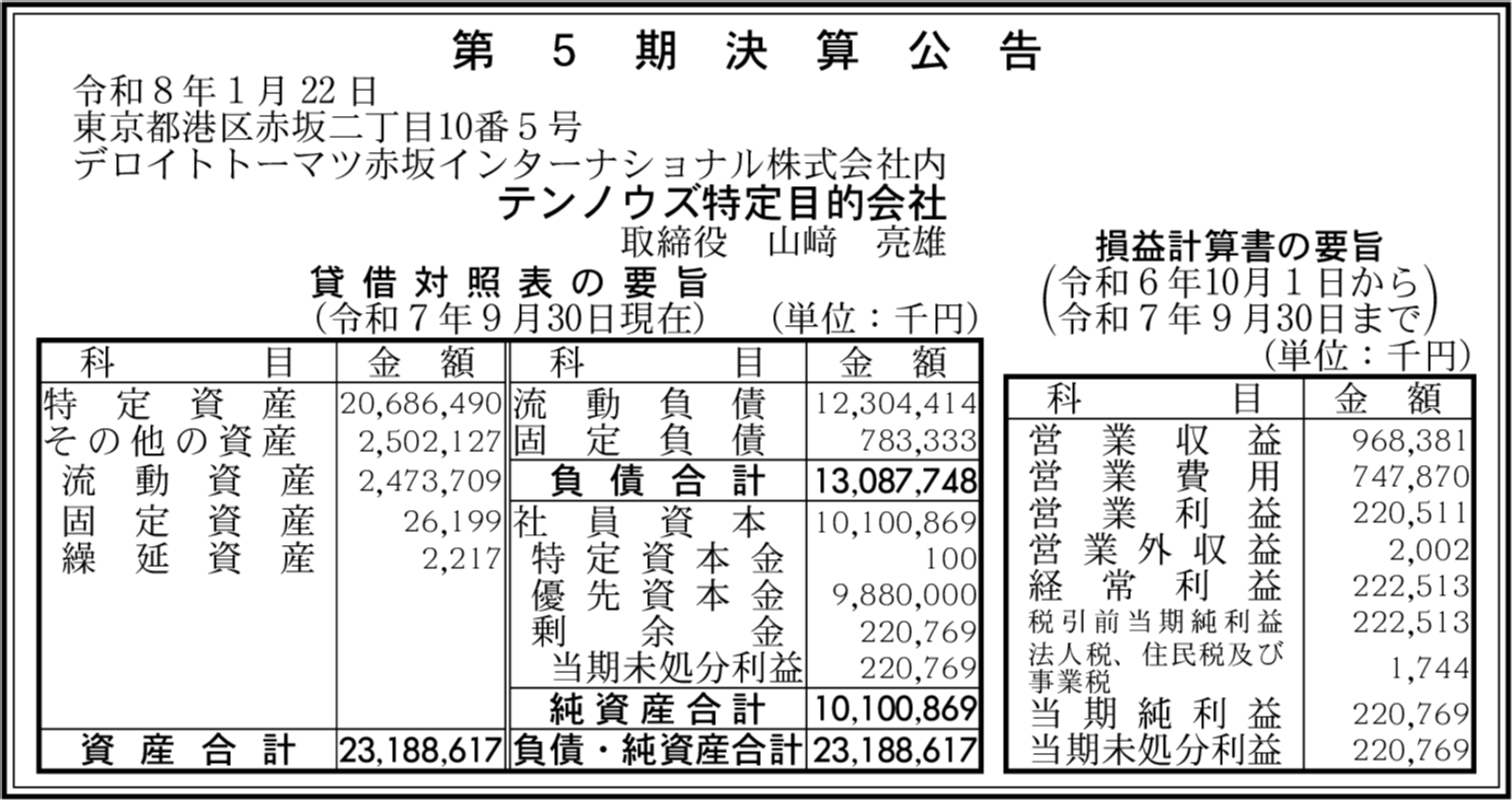 | 会社名 | テンノウズ特定目的会社 |