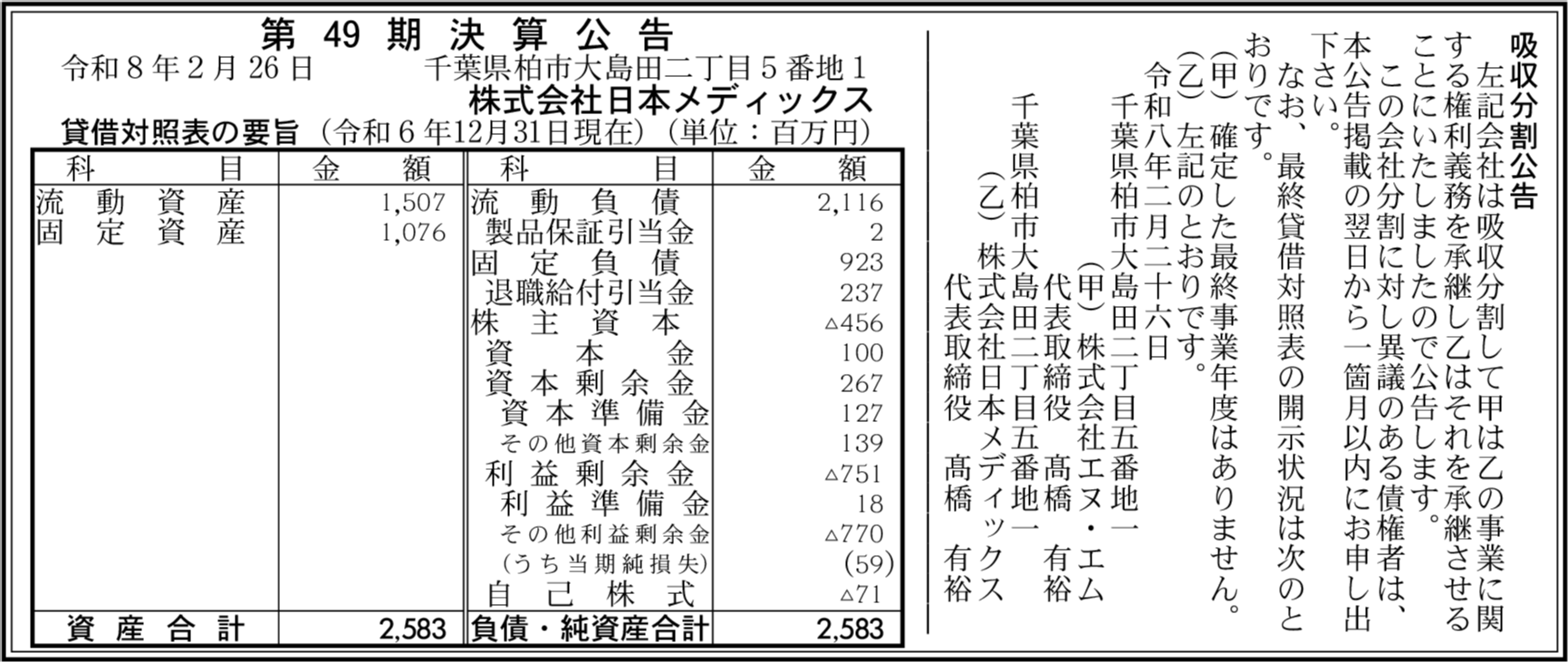 | 会社名 | 株式会社日本メディックス |