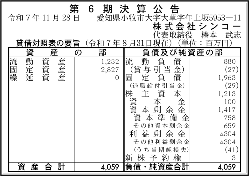 株式会社コスモ技研 愛知県小牧市 【2024年12月期】 |