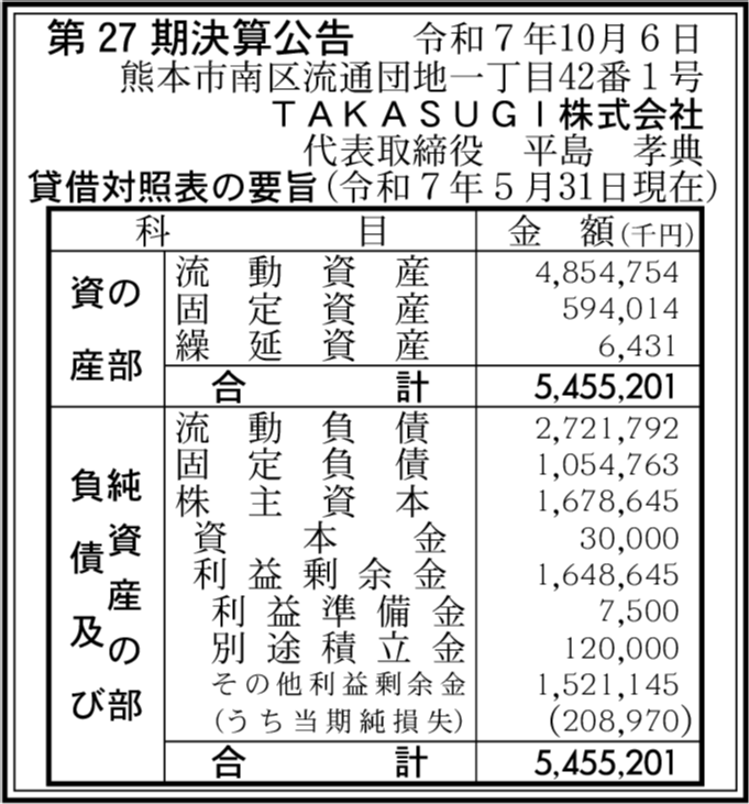 株式会社吉澤 熊本市南区 【2025年4月期】 |