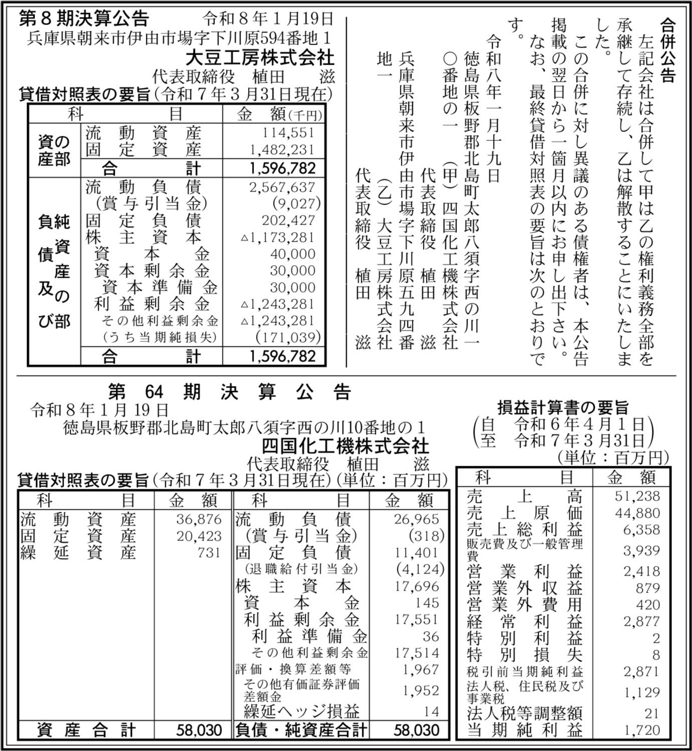 四国化工機株式会社 徳島県板野郡北島町 【2025年3月期】 |