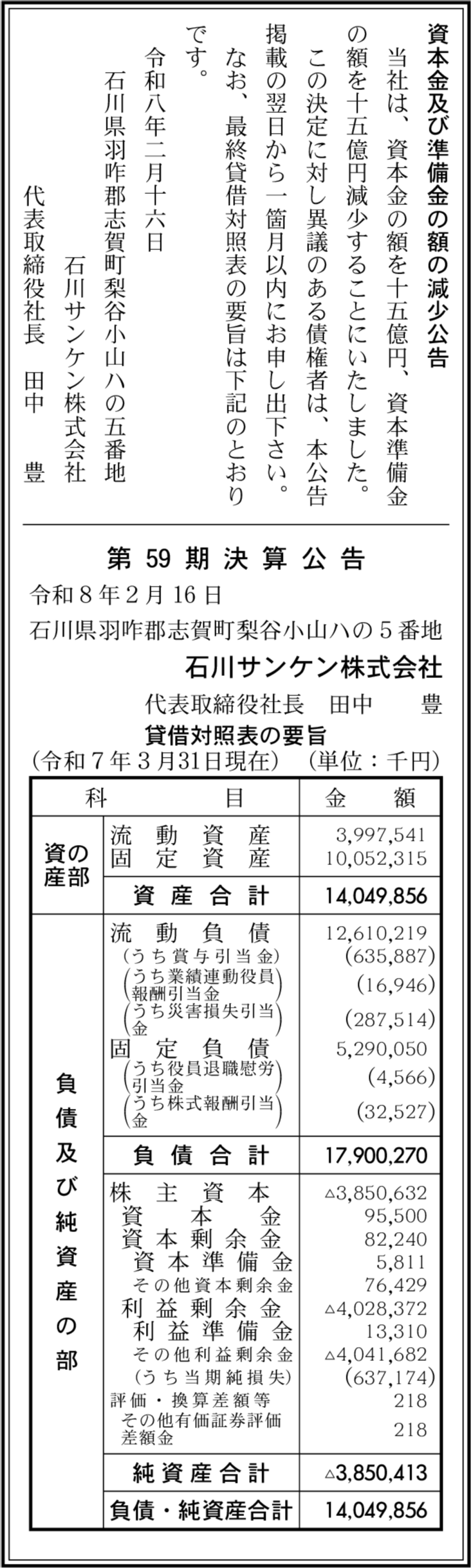 | サンケンオプトプロダクツ株式会社 | 石川県羽咋郡志賀町 | ▲6,163万4,000円 |