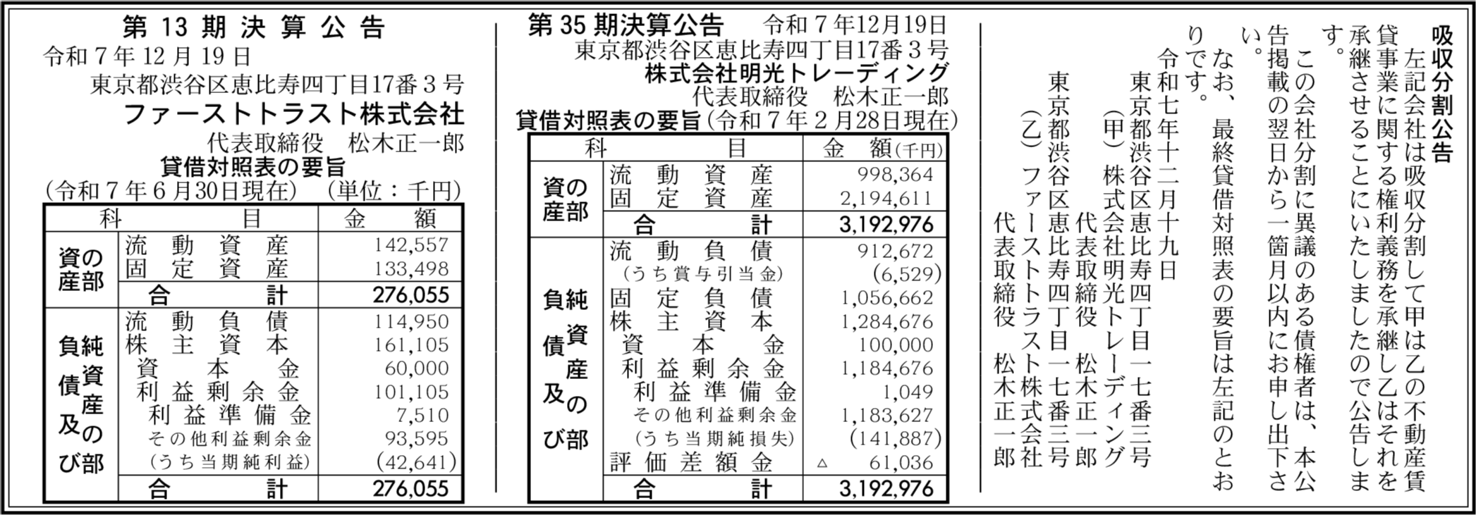 株式会社明光トレーディング 東京都渋谷区 【2025年2月期】 |