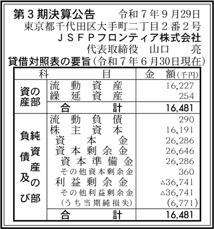 JSFP Development株式会社 東京都千代田区 【2025年2月期】 |