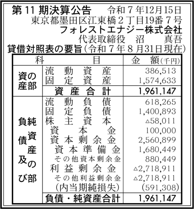 | 会社名 | フォレストエナジー株式会社 |