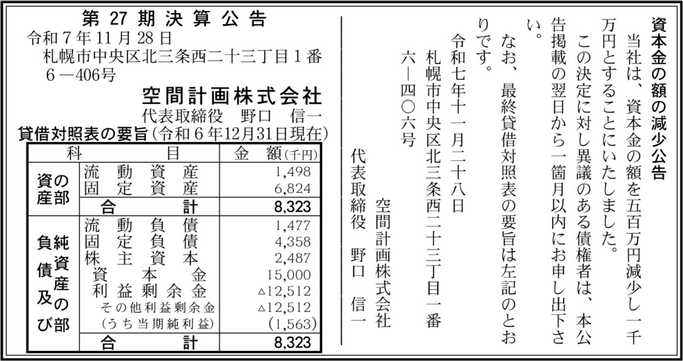 札幌国際観光株式会社 札幌市中央区 【2025年1月期】 |