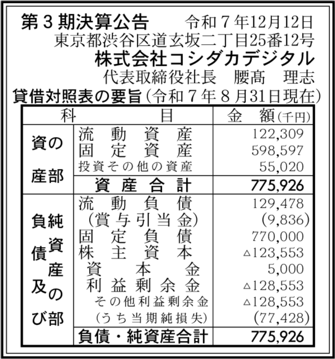 株式会社コシダカビジネスサポート 東京都渋谷区 【2024年8月期】 |