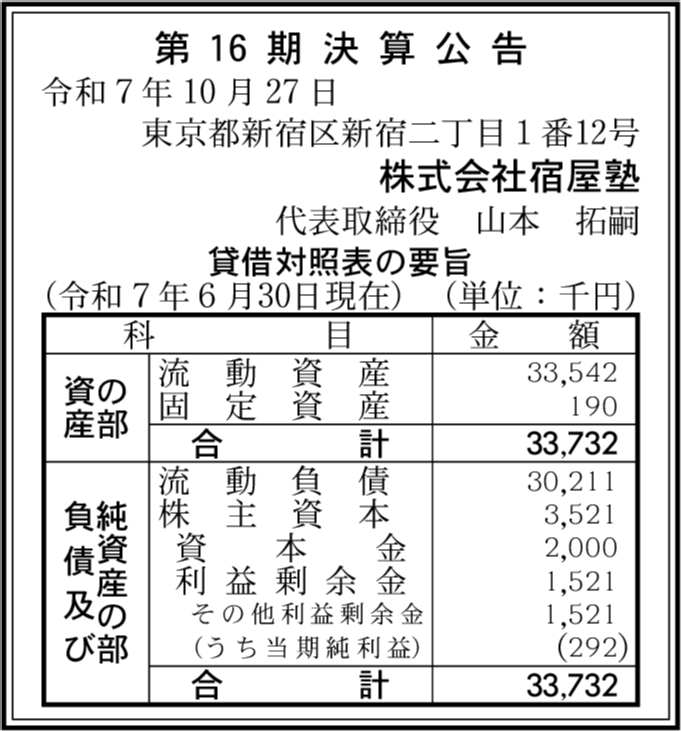 | 会社名 | 株式会社宿屋塾 |