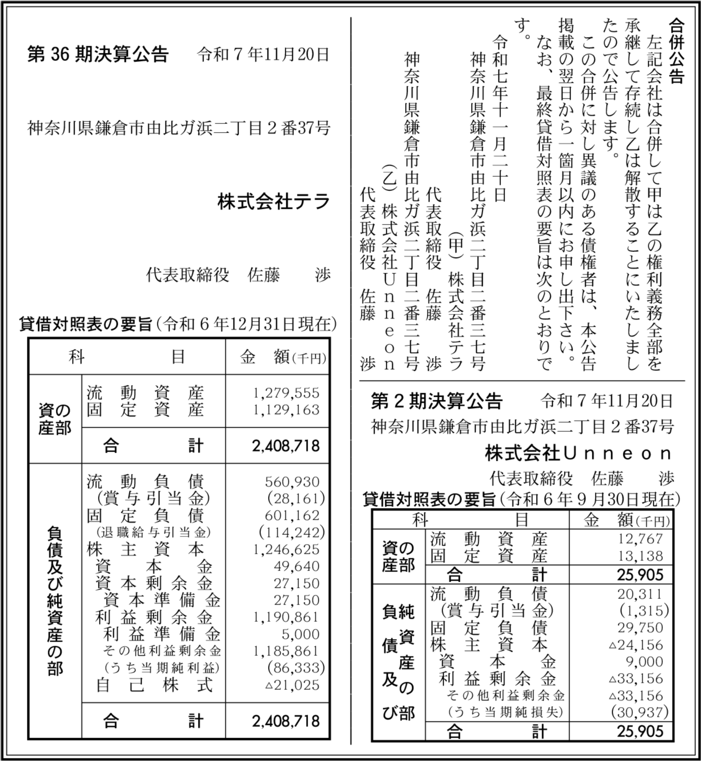 株式会社Unneon 神奈川県鎌倉市 【2024年9月期】 |