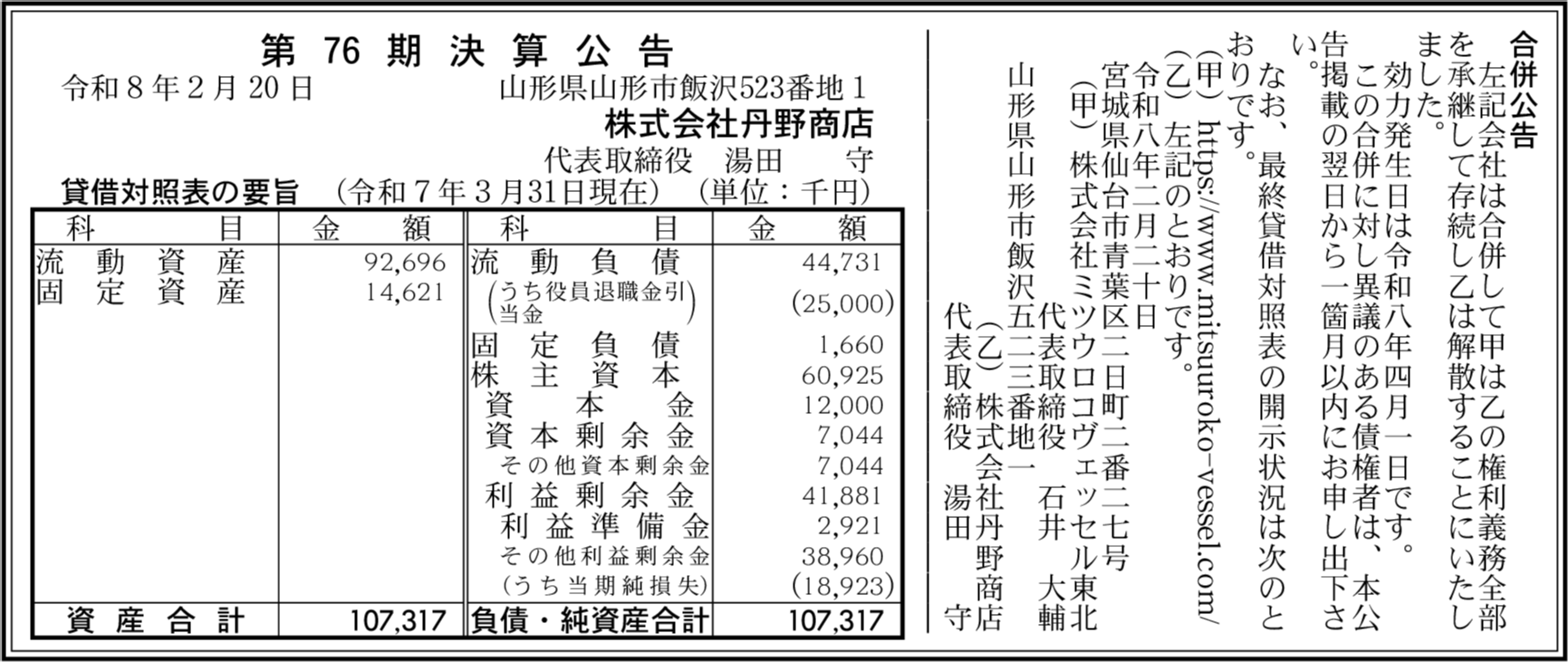 | 会社名 | 株式会社丹野商店 |