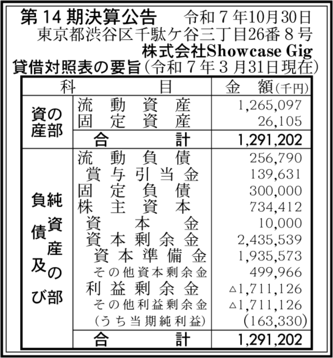 | next Sound株式会社 東京都渋谷区 【2025年2月期】 | △1,065万2,150円 | △3,720万2,370円 | 3,821万2,909円 |