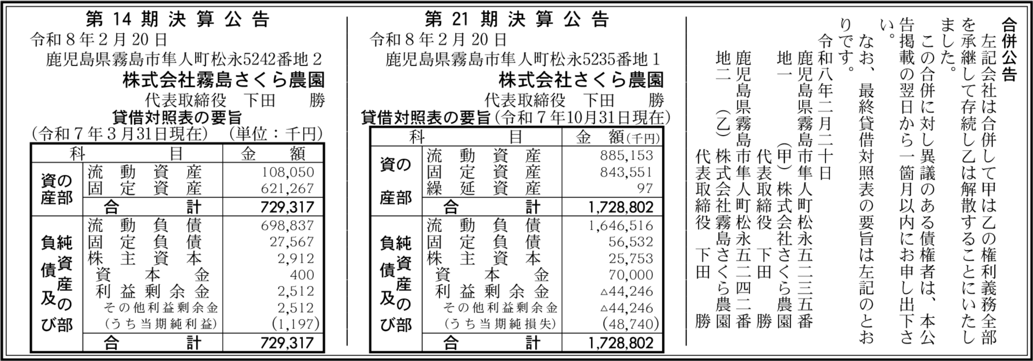 株式会社さくら農園 鹿児島県霧島市 【2025年10月期】 |