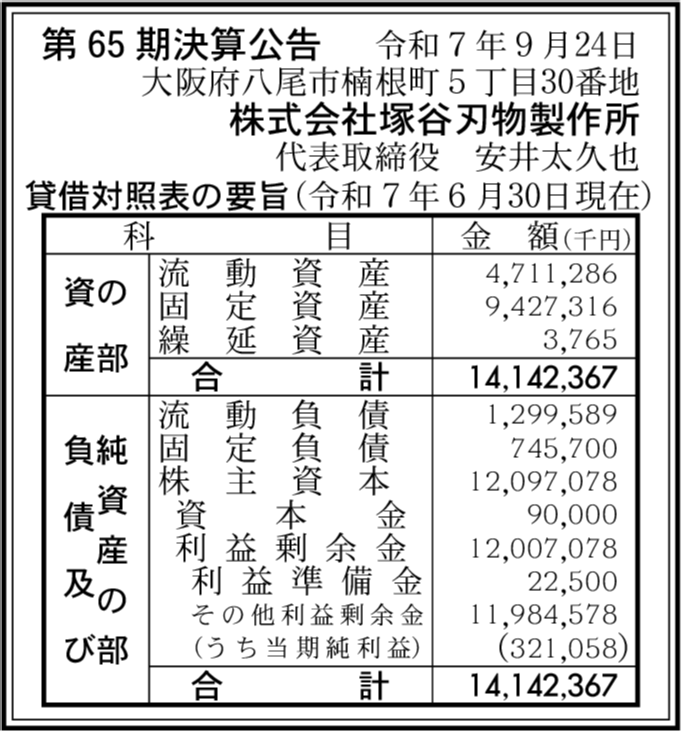 | 会社名 | 株式会社塚谷刃物製作所 |